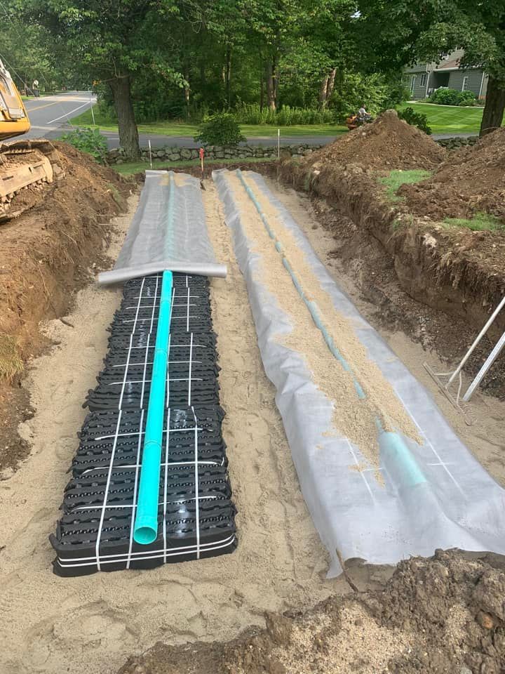 We recently completed a septic installation for a seller in Wilbraham who had an urgent deadline to meet before the closing date. Our team successfully concluded the project on the morning of the closing, ensuring that payment was not withheld until the septic work was finished. The location presented a challenge as we skillfully had to load the truck over a stone wall and under power lines on the street, all due to limited space. We closely coordinated with the engineer and town inspector to obtain their signatures on the certificate of compliance. In addition, we covered the entire affected area with fresh loam, raked it, and hydroseeded it as the final step of the project. Hydroseeding is a highly effective method to restore a lawn to its full and vibrant state after excavating and installing a septic system. Typically, we combine grass seed, fertilizer, and mulch which helps the seed germinate quickly.